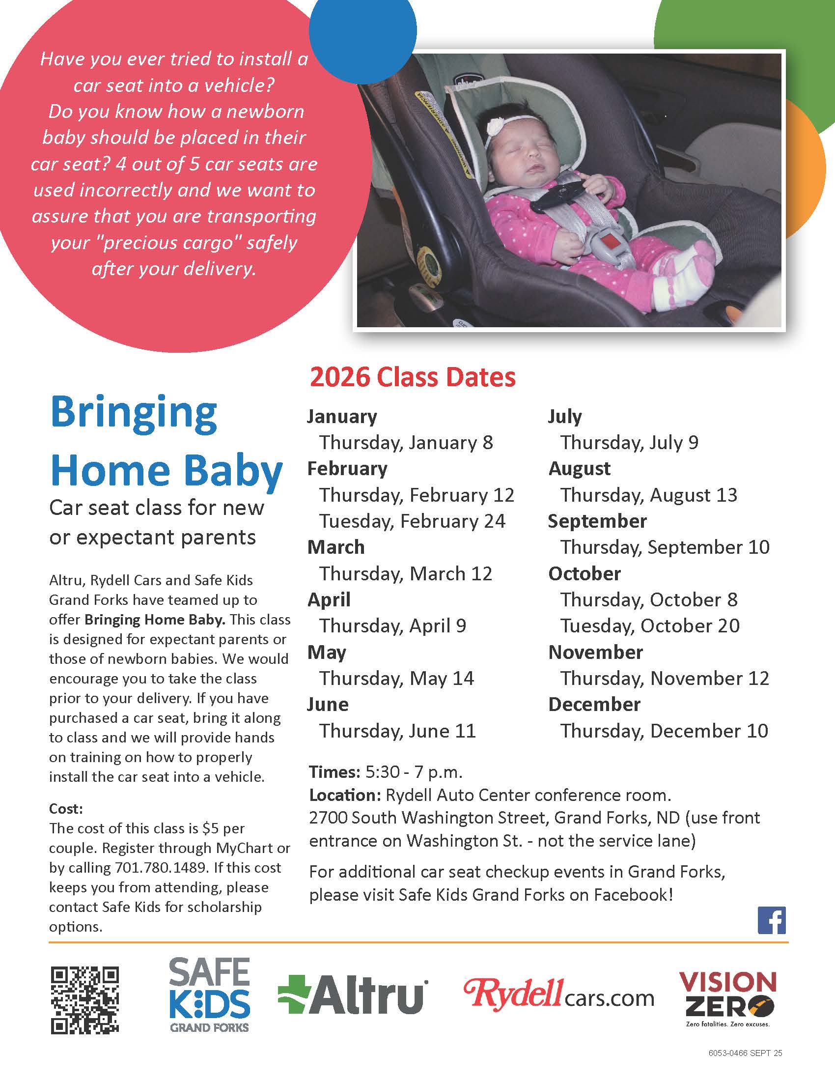 Education is a key component to any successful and comprehensive injury prevention program. Safe Kids Grand Forks conducts many classes that are geared for parents, children, caregivers, health professionals, law enforcement personnel and many others involved in taking care of children and youth. Below is a listing of our routinely scheduled classes. One-time events will be listed on the Upcoming Events Calendar with a link for more information.